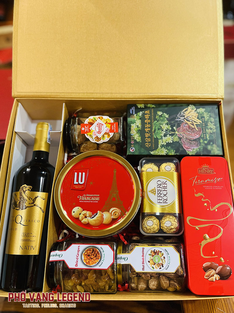 Tham khảo những mẫu hộp quà tết ấn tượng, Hamper sang trọng tại Phố Vang Legend.