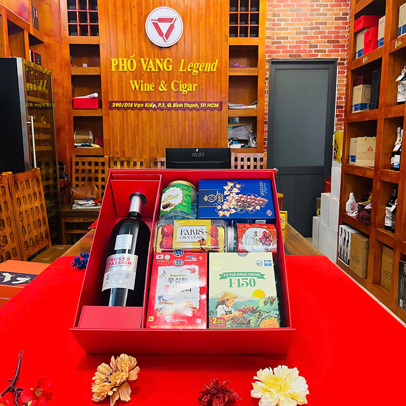 Phố Vang Legend chọn vang Rosso Passion – dòng vang Ý nồng nhiệt, dễ uống để làm trung tâm cho bộ quà tặng phong phú, mang lại sự cân bằng giữa đẳng cấp và tính thực dụng.