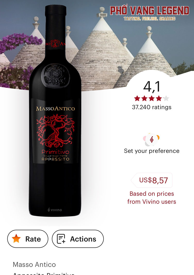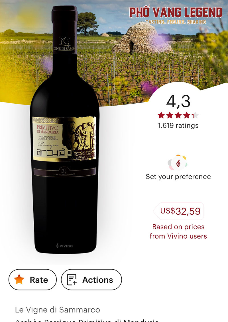 Phố Vang Legend – TOP 5 chai rượu vang Primitivo ngon.