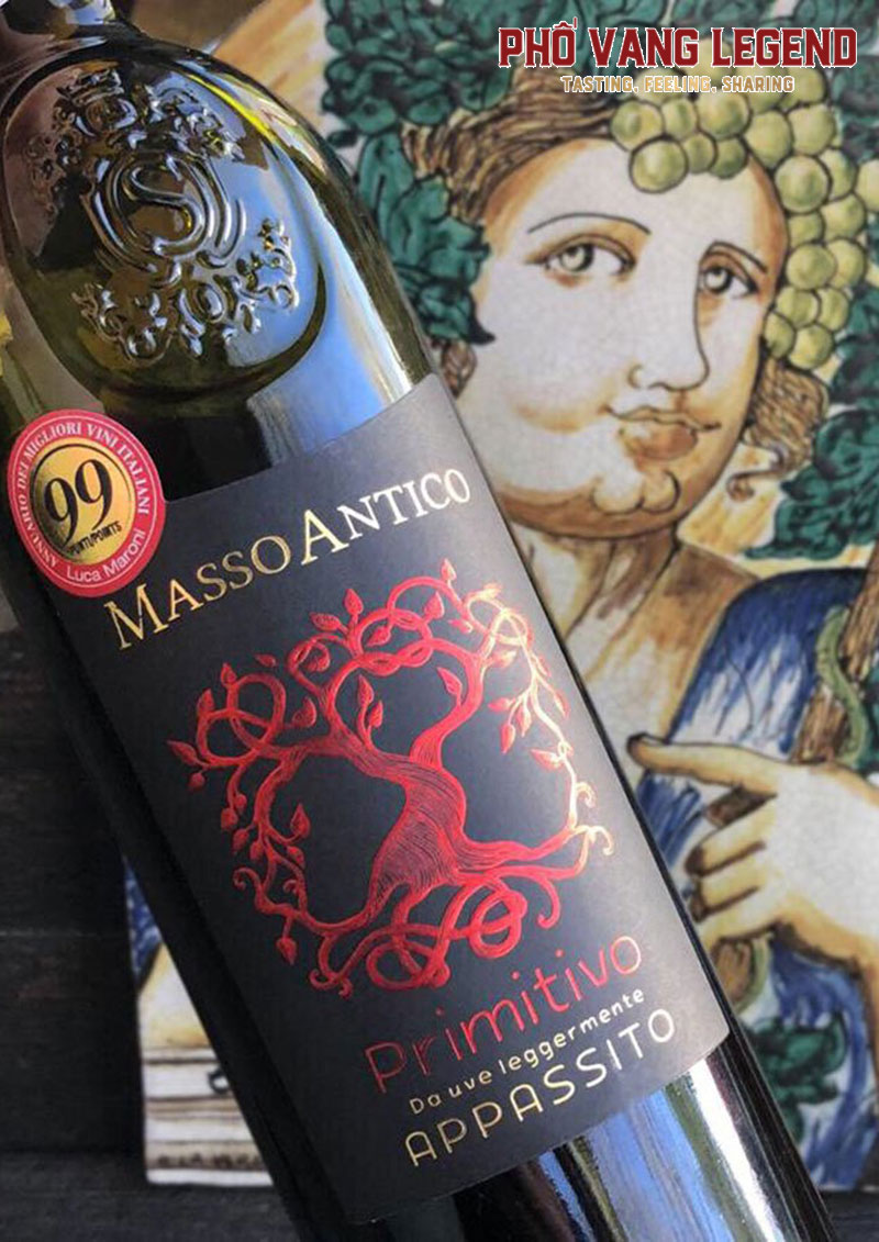 Rượu vang Masso Antico Primitivo làm từ 100% nho Primitivo giống nho bản địa của nước Ý. Nổi tiếng với mầu vỏ đen (đỏ sẫm) có vị ngọt tự nhiên. Mùi vị đậm đà và nồng độ cồn cao hơn những giống nho khác thậm chí nó còn có thêm vị chát đắng. Primitivo tạo ra các sản phẩm rượu vang có màu sắc và hương vị đậm đà. Các chai vang từ nho Primitivo thường có độ cồn và hàm lượng tannin cao hơn so với các giống nho khác. Giống nho Primitivo đang phát triển rực rỡ tại Salento miền nam nước Ý.