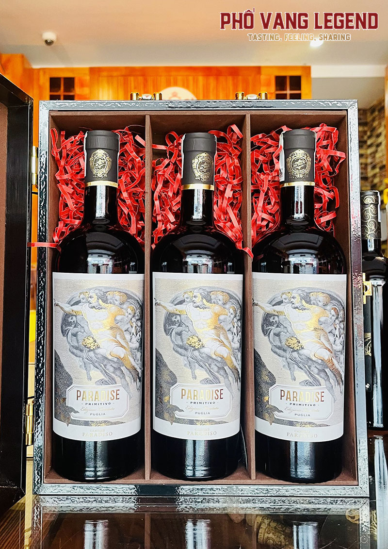Rượu vang Paradise Primitivo Limited Edition chính là phiên bản giới hạn, biểu tượng danh tiếng của nhà Paradiso được Winemaker tạo ra từ vườn nho Primitivo hơn 25 năm tuổi chất lượng nhất trong tất cả các vườn nho mà Cantine Paradiso có. Đó là lý do mà chai vang Paradise có màu ruby đậm đặc, nồng độ cồn cao với hương thơm mãnh liệt, cá tính. Tên chai vang có nghĩa là “Thiên đường” như muốn dành cho những người đam mê, yêu rượu rượu vang với một tình yêu bất tận một chai vang tuyệt vời để hưởng thụ, từ màu sắc đến những tầng hương và hậu vị ngọt ngào.