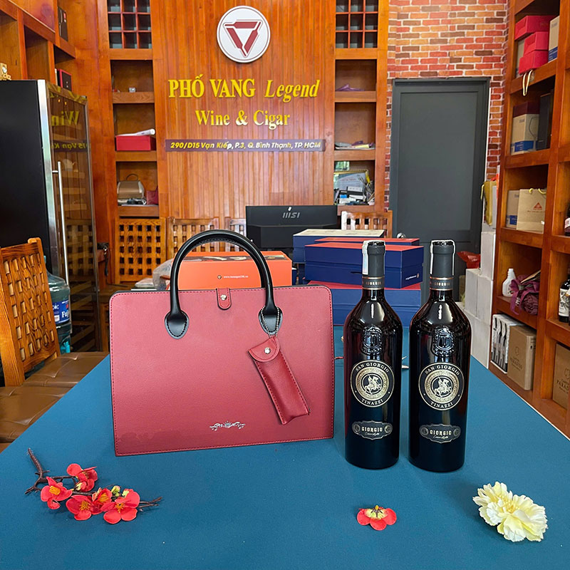 Tết này, hãy thử một trải nghiệm hoàn toàn khác biệt với Túi Da Quà Tặng Rượu Vang Đôi – PV09. Món quà dành cho những người sành sỏi thực thụ, những người trân trọng sự đậm đà, mạnh mẽ và cá tính vượt trội. Phố Vang Legend giới thiệu hai chai vang San Giorgio 18 Độ – dòng vang Ý hiếm hoi với nồng độ mạnh mẽ, tượng trưng cho ý chí kiên cường, sự bứt phá và thành công.
